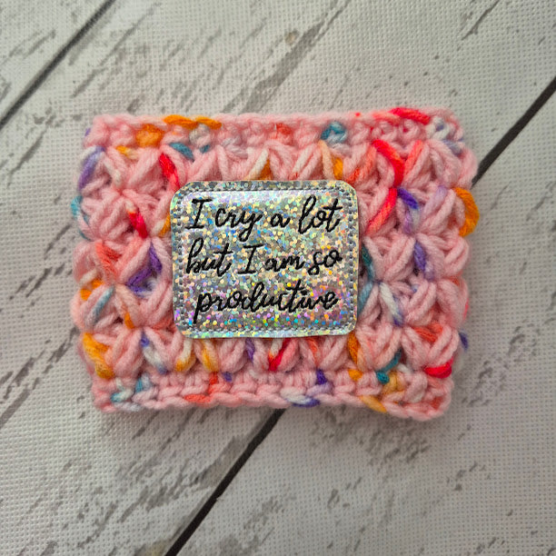 Keep your drink snug and stylish with the I Cry Alot But... Drink Cozy. This funny & fun crochet cozy adds a bit of sarcasm & laughter while keeping your beverage just the right temperature. Perfect for cozying up your cup and showing off your playful side.